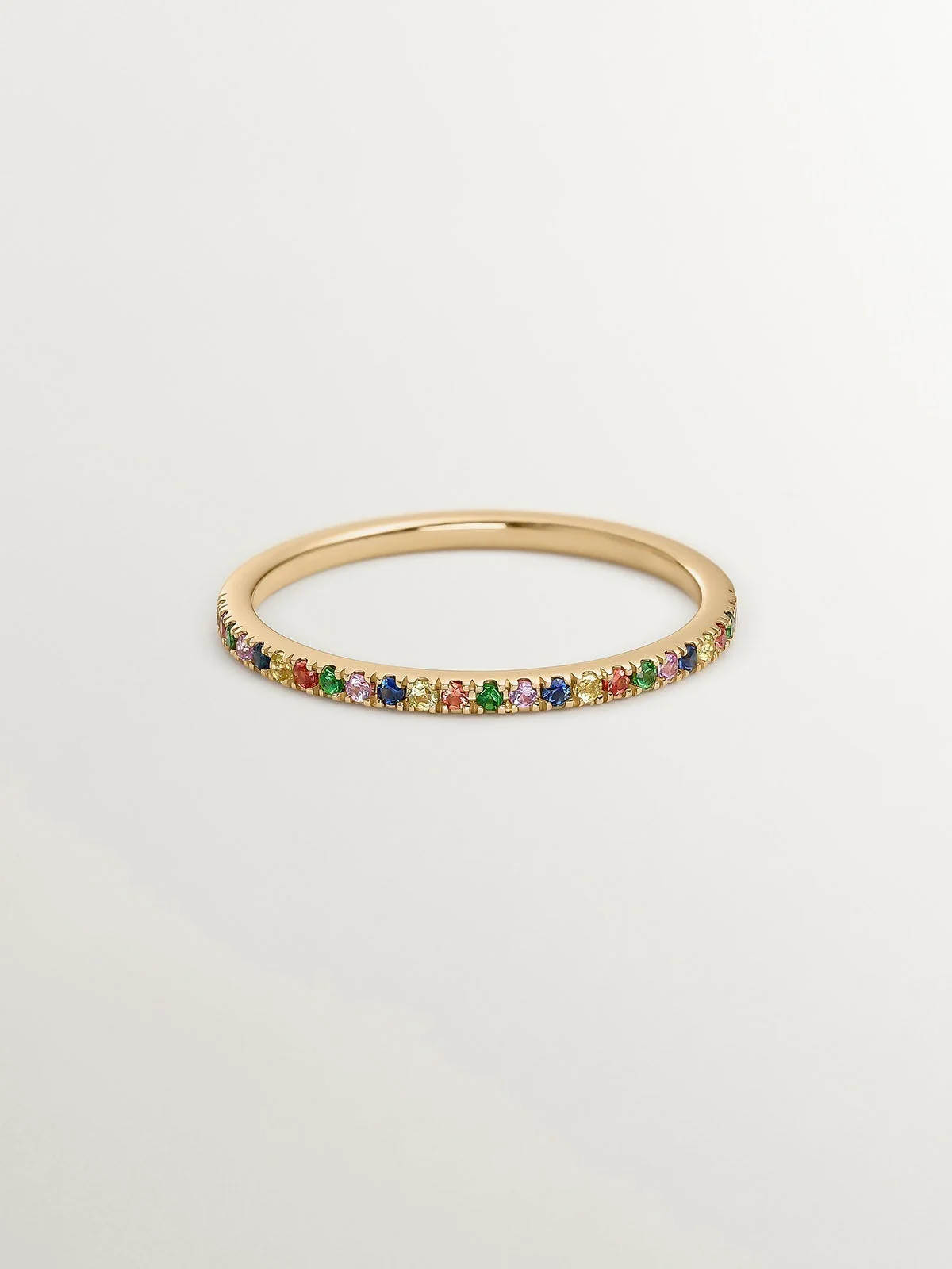 Anillo de oro amarillo de 9K con tsavoritas y zafiros multicolor