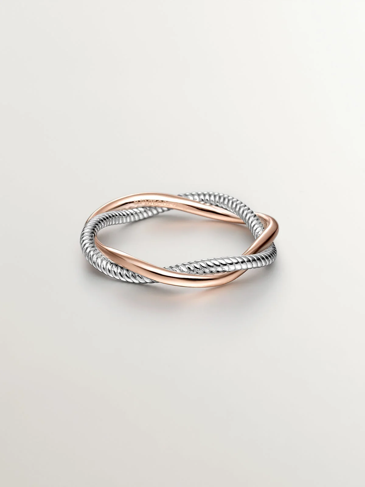 Anillo doble trenzado de plata 925 bañada en oro rosa de 18K