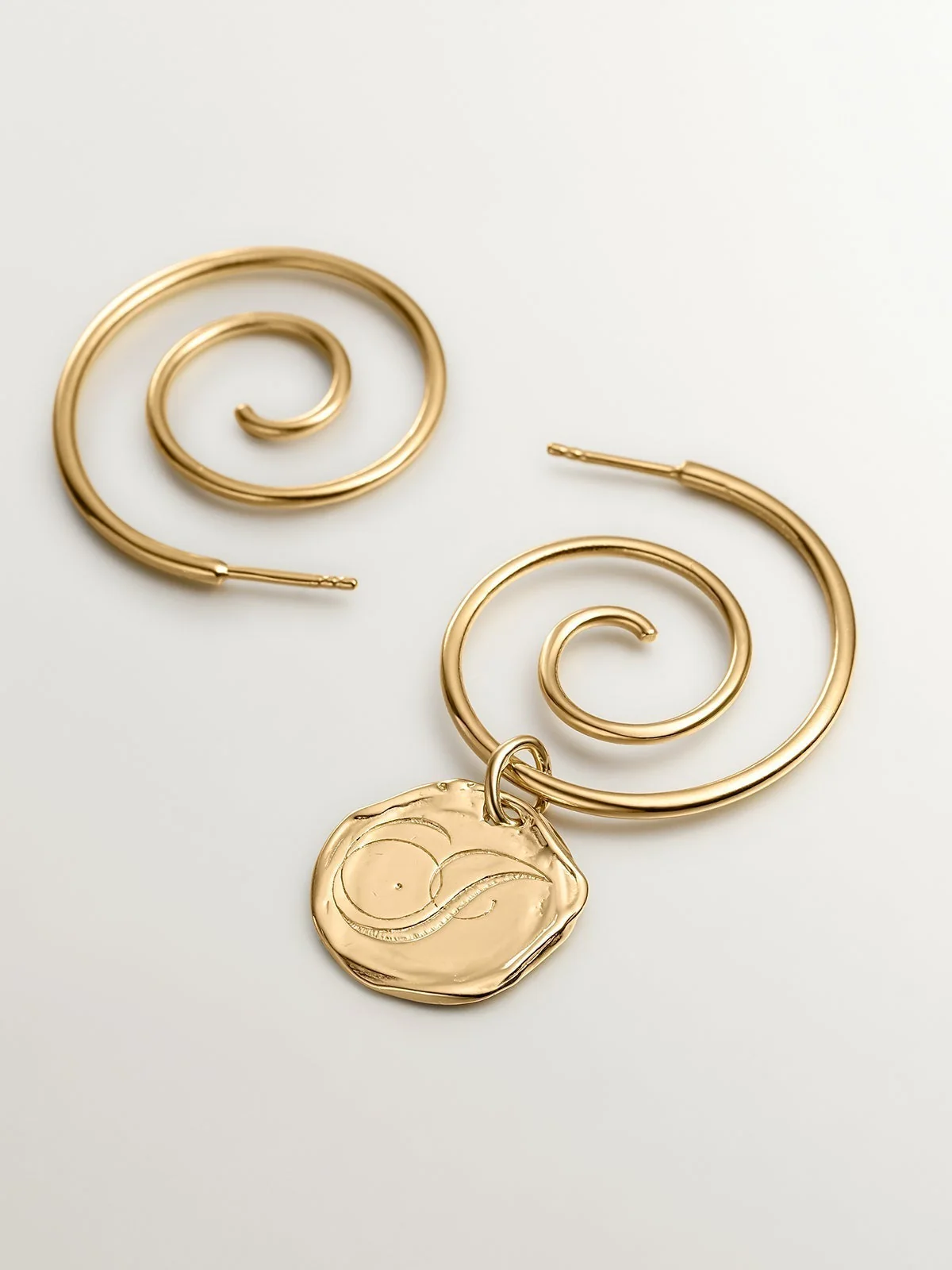 Pendientes de aro pequeños de plata 925 bañada en oro amarillo de 18K con acabado en relieve