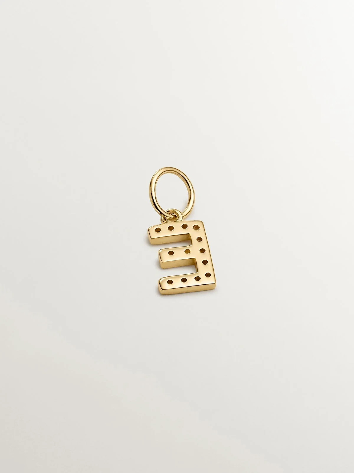 Charm de plata 925 bañada en oro amarillo de 18K y topacios blancos inicial E