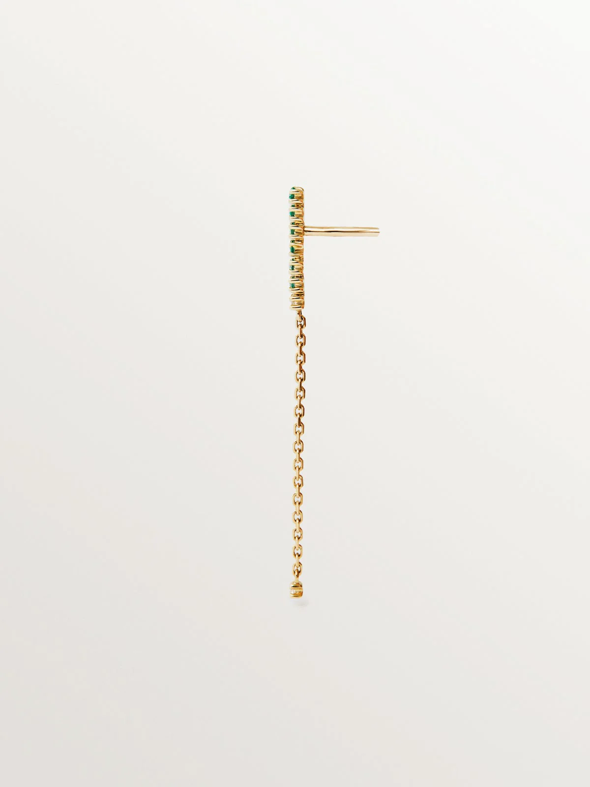 Pendiente largo individual de oro amarillo de 9K con esmeraldas y diamantes