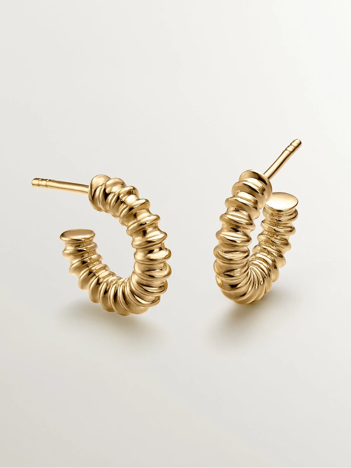 Pendientes de aro pequeños de plata 925 bañada en oro amarillo de 18K con acabado en relieve