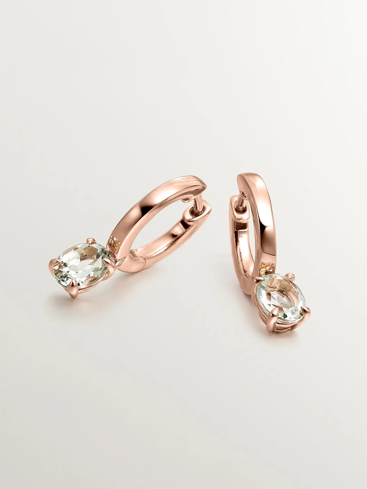-70%Pendientes de aro pequeños de plata 925 bañada en oro rosa de 18K con cuarzo verde—