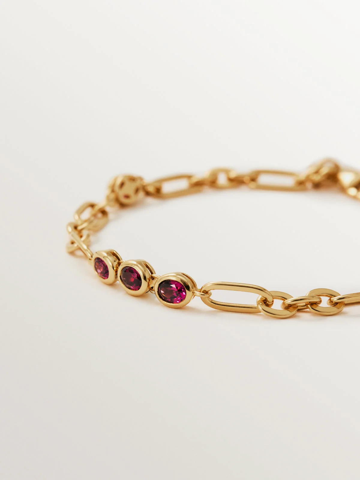Pulsera de cadena de plata 925 bañada en oro amarillo de 18K con rodolitas rojas